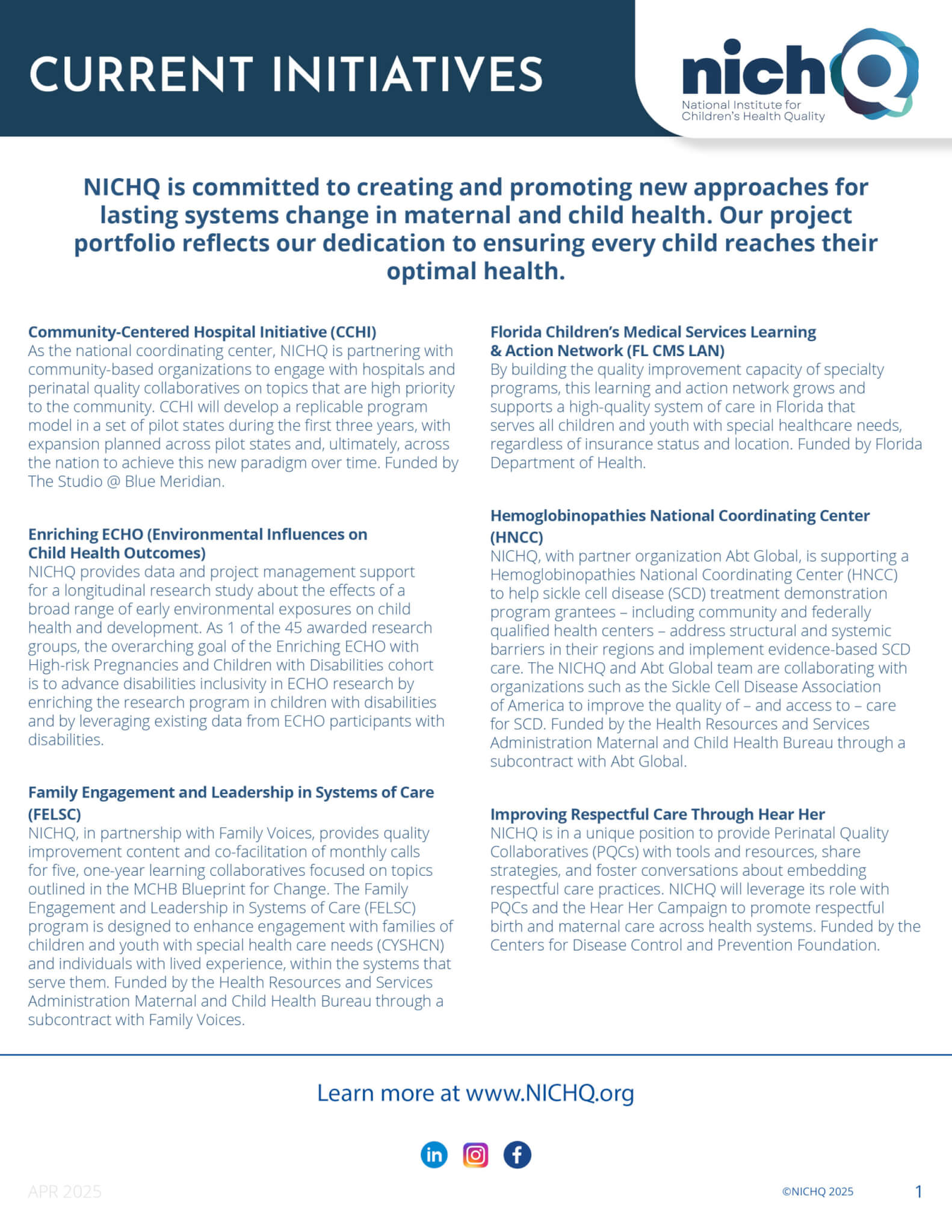 NICHQ led the National Action Partnership to Promote Safe Sleep Improvement and Innovation Network (NAPPSS-IIN). The NAPPSS-IIN project aim was to make safe sleep and breastfeeding the national norm by aligning stakeholders to test safety bundles in multiple care settings to improve the likelihood that infant caregivers and families receive consistent, evidence-based instruction about safe sleep and breastfeeding. The project worked to address cultural practices and racism on adherence to safe sleep and breastfeeding recommendations. The project also addressed structural racism as the root cause of SUID inequities among Black and Indigenous infants.
